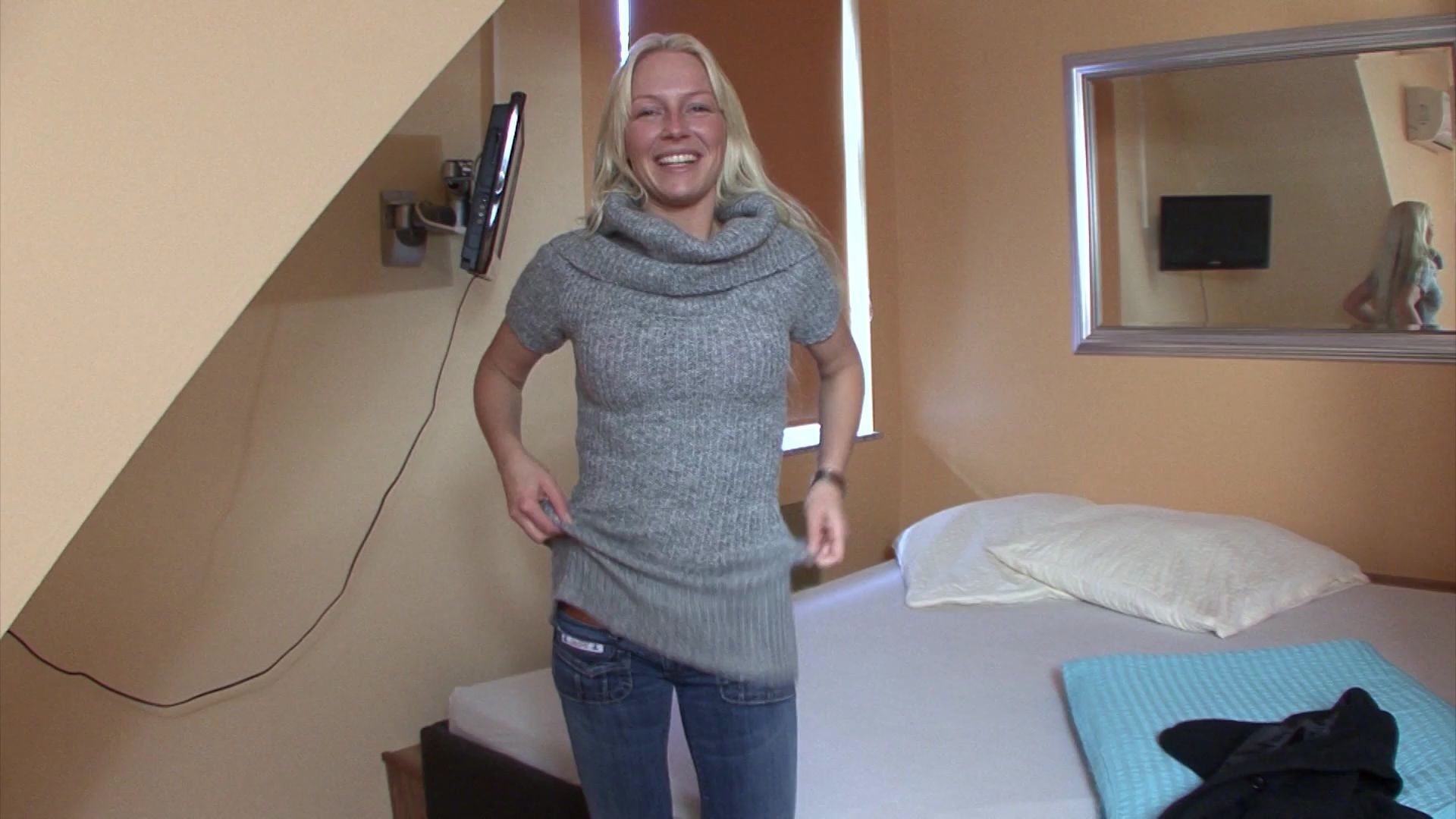 Blondes Flittchen von der Strasse auf die Fickmatratze gelotst