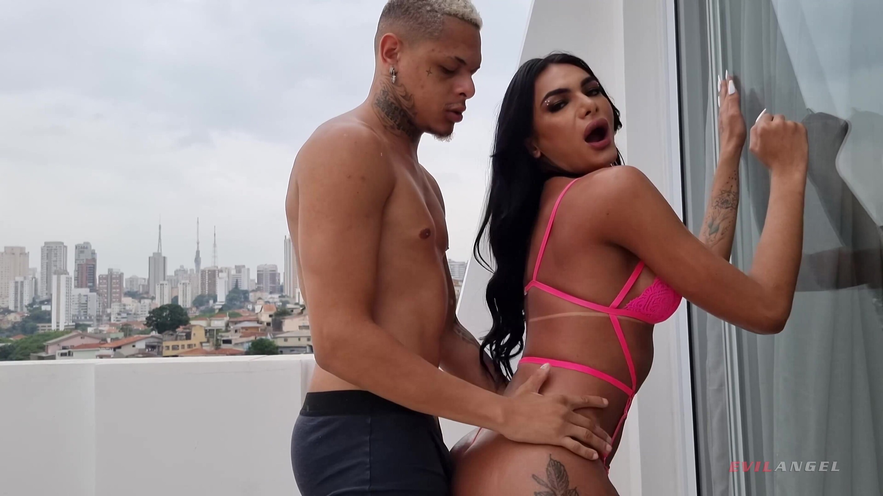 In "Trans-Active 32" zeigt Regisseur Joey Silvera in sechs Szenen, die von Charme und Persönlichkeit geprägt sind, warum er der Dekan der transsexuellen XXX-Unterhaltung ist. Eine TS-Schönheit führt eine Solo-Show vor; heiße T-Girls verführen kühne Hengste in zwei Dates, darunter ein Dreier; zwei Szenen sind Trans-auf-Trans-Begegnungen; und Joey paart die fabelhafte, spritzige TS Andylynn Payne mit dem cisgender weiblichen Porno-Superstar Emma Rosie! Die durchtrainierten T-Stars Shakira Brazil und Sofia Havenna tragen passende Dessous mit schwarzen Netzstrümpfen. Sofia's große Titten sehen heiß aus, während sie Shakira einen Blowjob gibt. Jede nimmt die andere in die Zange. Sofia nimmt einen Doggie-Style Anal-Slaming, und sie sodomizes Shakira. Sie tauschen Sperma-Gesichtsbehandlungen aus und tauschen Sperma in lustvollen Küssen aus. Die bezaubernde Brünette Andylynn neckt ihren eingeölten Körper in einem pinkfarbenen BH und weißen Cut-Offs mit Lacy-Höschen. Ihre Erektion schnellt hervor! Die verführerische, lüsterne Trans Doll masturbiert. Die zierliche Blondine Emma tanzt und entblößt dabei ihre kleinen, natürlichen Brüste. Sie küssen sich. Emma gibt einen BJ. Andylynns gebogener Schwanz bohrt sich in Emmas Muschi. Rosie lässt sich rektal aufbohren und genießt ihren Geschmack beim Blasen von Arsch zu Mund. Die Damen teilen sich 69. Andylynn isst ihre Muschi. Emma sitzt auf Andylynns Gesicht. Andylynn probiert Emmas Füße und frönt ihrem Fußfetisch. Die Mädchen teilen sich Sperma in schlampigen Schneeballküssen. Die dunkelhaarige transsexuelle Verführerin Kelly Melo steht in pinkfarbenen Bikini-Dessous und Netzstrümpfen auf einem Balkon mit Blick auf die Skyline der Stadt. Der Macho Henrique Miranda streichelt Kellys auffälligen Körper, und sie küssen sich. Drinnen nimmt Henrique einen Deepthroat! Kelly stößt ihn in den Arsch. Sie wichst ihren Joint, während sie ihm einen bläst. Henrique stößt Kelly in verschiedenen Positionen, während sie ihr Mädchenwerkzeug massiert. Kelly feuert lange Stränge von Sperma über Henriques offenen Mund. Er bespritzt ihre Zunge. Sie tauschen das Sperma in einem Kuss aus. Die glühende TS-Brünette Lacie Batista stellt ihre Titten zur Schau und reibt die wachsende Beule in ihrer Lacy-Unterhose. Sie beugt sich vor, ihren gekrümmten Ständer zwischen den Beinen versteckt. Die Hengste Alex Victor und Jin Matsui kommen für eine Dreiergruppe! Beide Jungs blasen Kauany und lecken ihr Arschloch. Sie leckt beide ihre Rektale! Alex nagelt ihr Hintertürchen. Jin kommt auf Kauanys üppigen Lippen zum Orgasmus, während Alex seine Schmiere auf ihren Bauch pumpt. Kauany spritzt ihre Ladung auf Jins Stirn. In schwarzer Latexkleidung und weißen Netzstrümpfen putzt die sexy TS Isabella Fiorella die Küchenarbeitsplatte. Ihr langes blondes Haar umrahmt ihr hübsches Gesicht, während ihre gebräunten, großen Brüste zum Vorschein kommen. Sie lässt ihren G-String fallen und schiebt sich langsam einen Glasdildo in ihren Schließmuskel, während sie ihren steifen Stab streichelt. Frau Fiorella fickt sich selbst kräftig. Die perverse Isabella legt den Dildo auf den Tresen, schiebt ihn in ihr Spundloch und lässt ihn wackeln. Die Diva spritzt einen Geysir von Sperma. Shakira kehrt in einem geblümten, zweiteiligen Badeanzug mit schwarzen Netzstrümpfen zurück; sie spreizt ihre Beine, wichst ihr Fleisch und küsst ihren Anus. Sie und Isabella teilen sich Fellatio und 69; jede pflügt den Hinterhof der anderen. Shakira verehrt Isabellas nasse Rute, A2M. Isabella ejakuliert auf ihren Bauch und Shakiras Mund. Shakira kommt laut zum Höhepunkt und schießt ihr eigenes Sperma auf ihre Leistengegend. Die Babes küssen sich zärtlich und beenden damit die heiße Affäre.