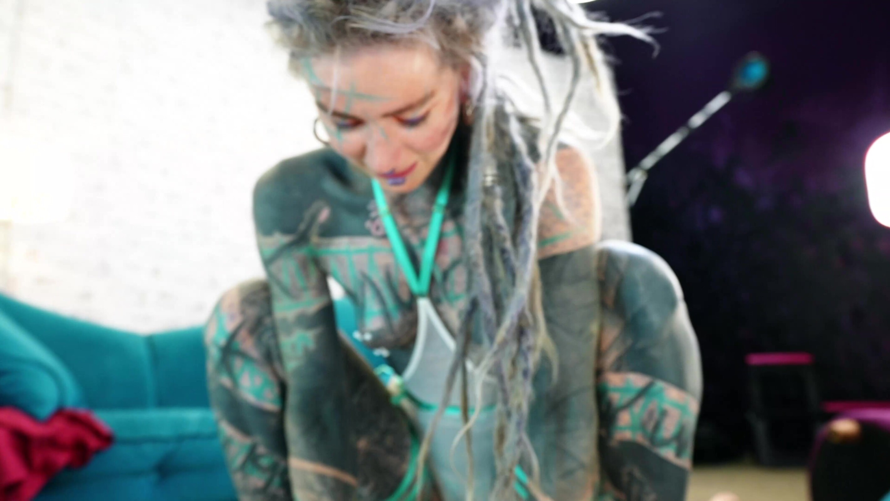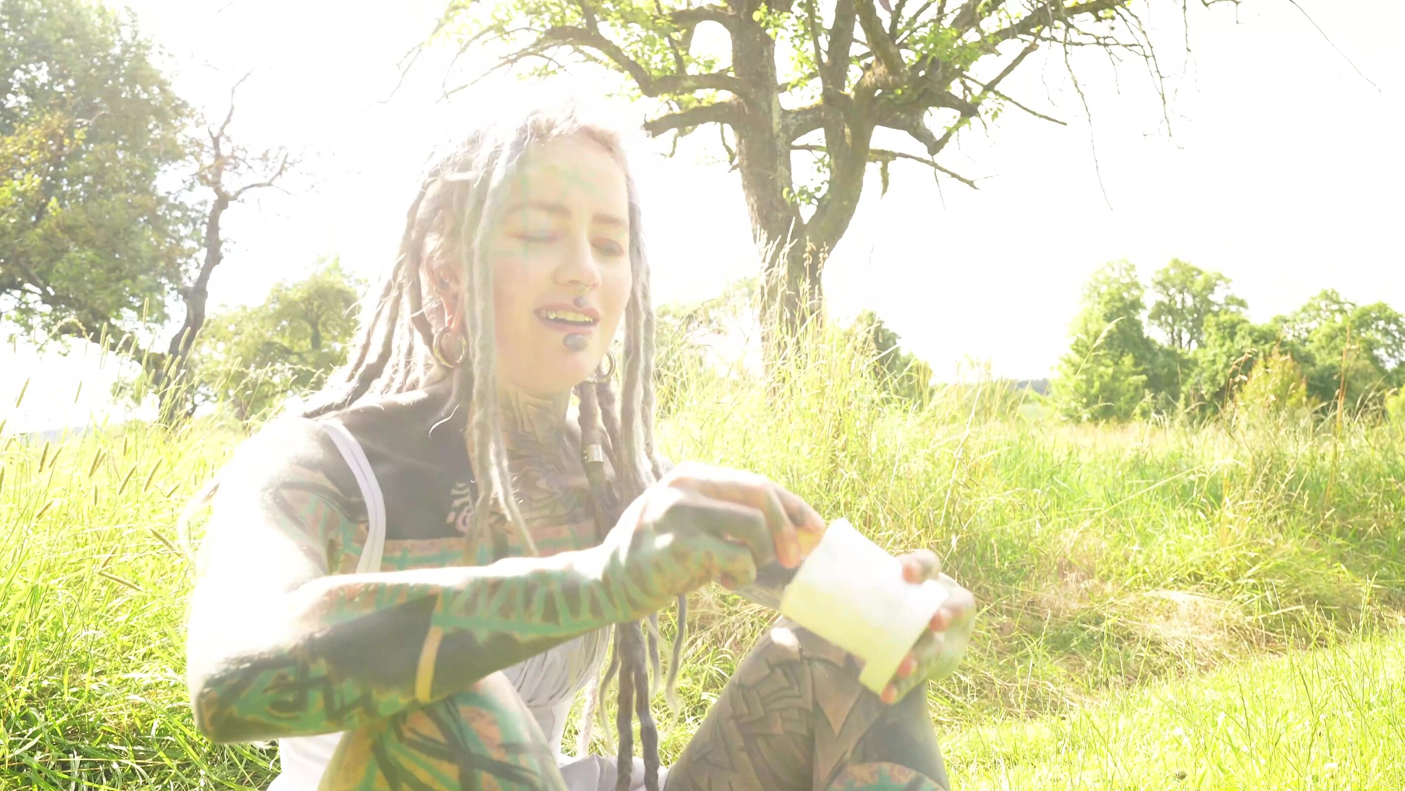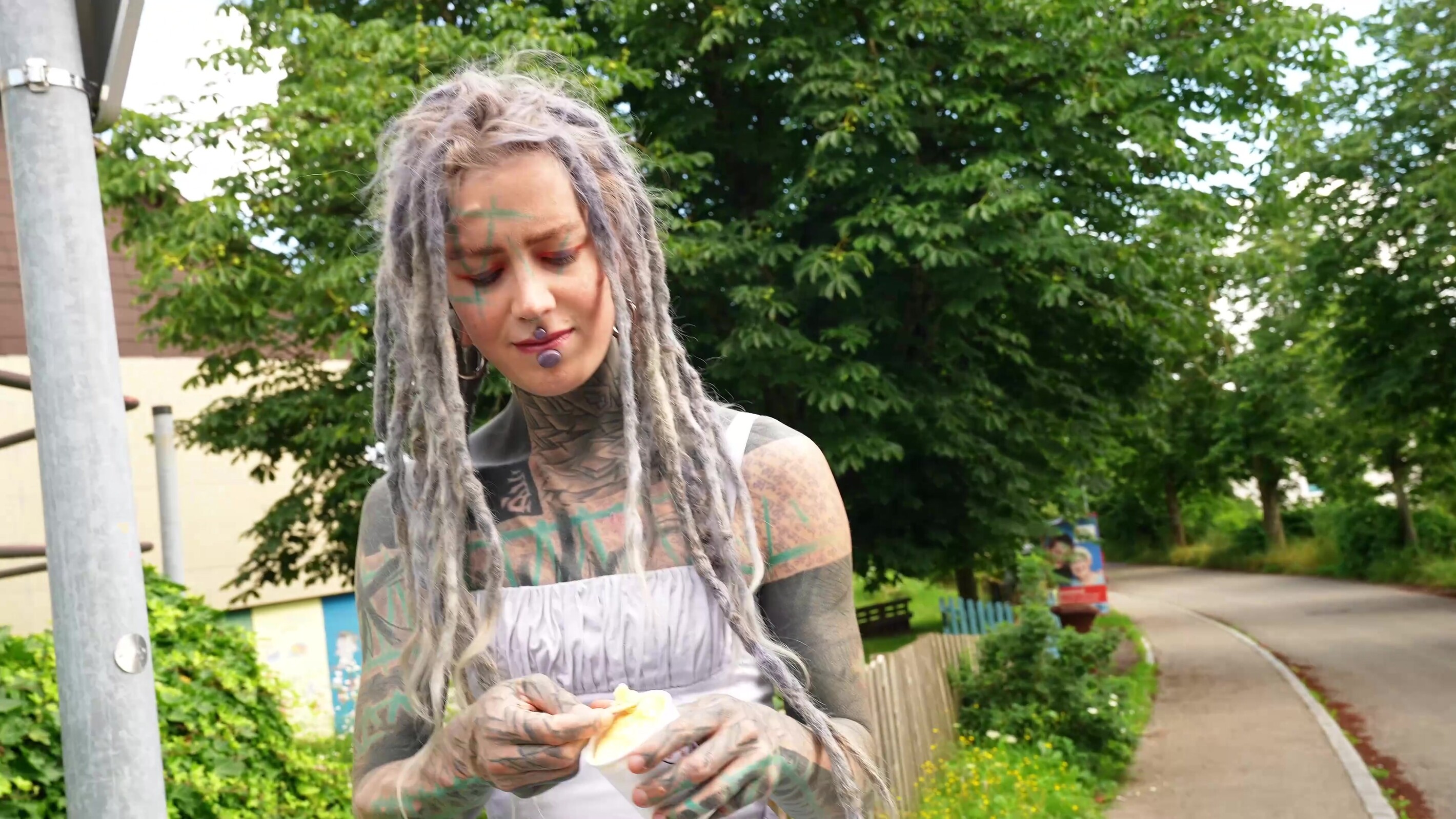 Gegen Mittag war ich hier in Bayern unterwegs und verfolgte den Tipp meines Freundes. Hier sollte es ein Mädel geben, das etwas ganz Besonderes ist. Also wartete ich – und irgendwann hatte ich tatsächlich Glück. Dreadlocks, komplett tätowiert und mit gespaltener Zunge – das war wirklich außergewöhnlich. Ich sprach sie direkt an, und nach anfänglicher Skepsis durfte ich erste Bilder von ihr machen. Schnell wurde sie lockerer, und wir beschlossen, mehr zu machen.