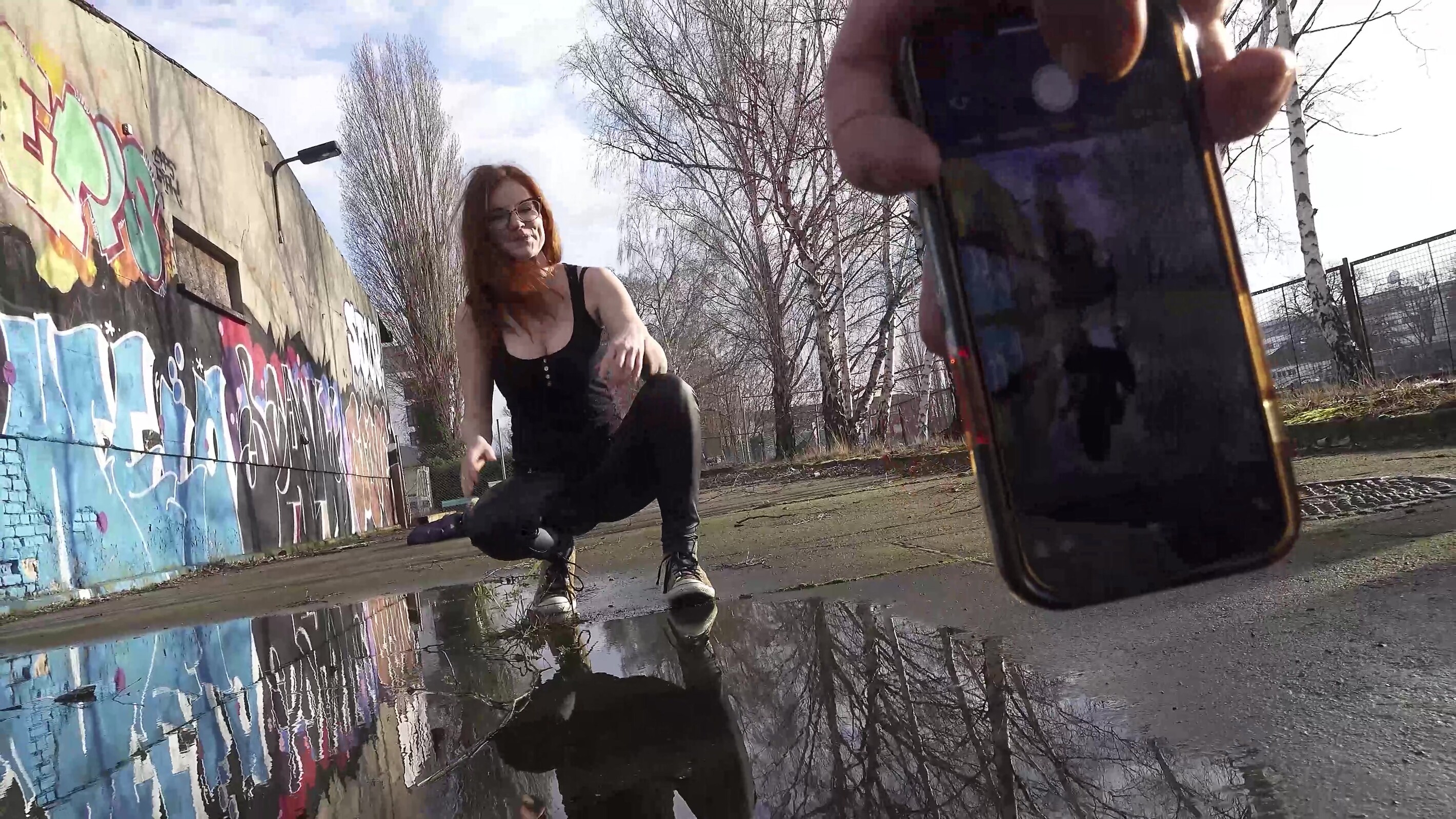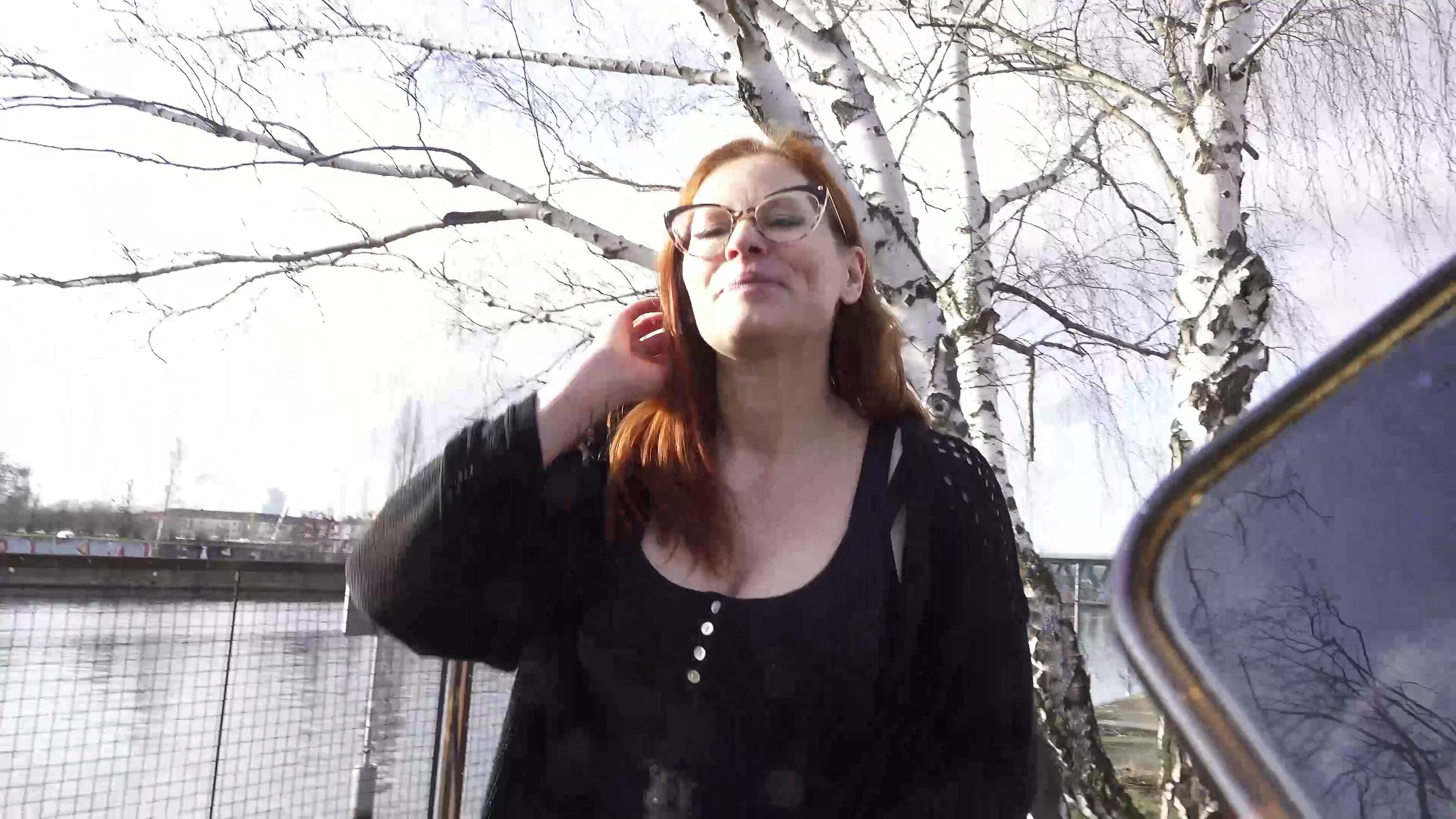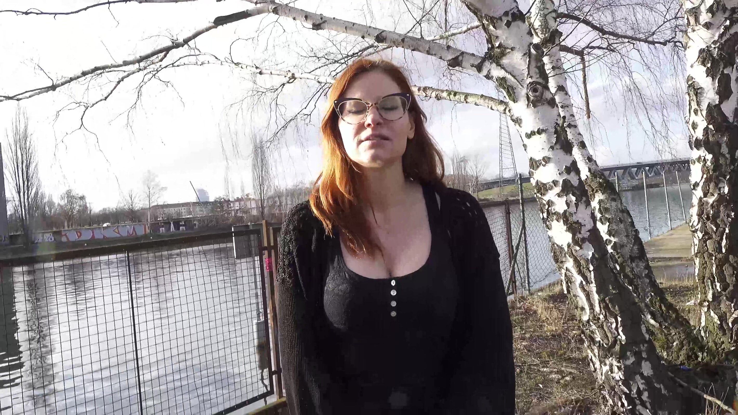 Die Rothaarige mit Brille sah ich fast jeden Tag hier am Lost-Place in Berlin spazieren. Jetzt wollte ich sie heute einfach mal ansprechen und mein Glück versuchen. Nach dem ersten Schock war sie schnell locker und wir machten ein paar Bilder. Bald konnte ich sie überreden bei mir in der Wohnung etwas bessere Bilder zu machen.