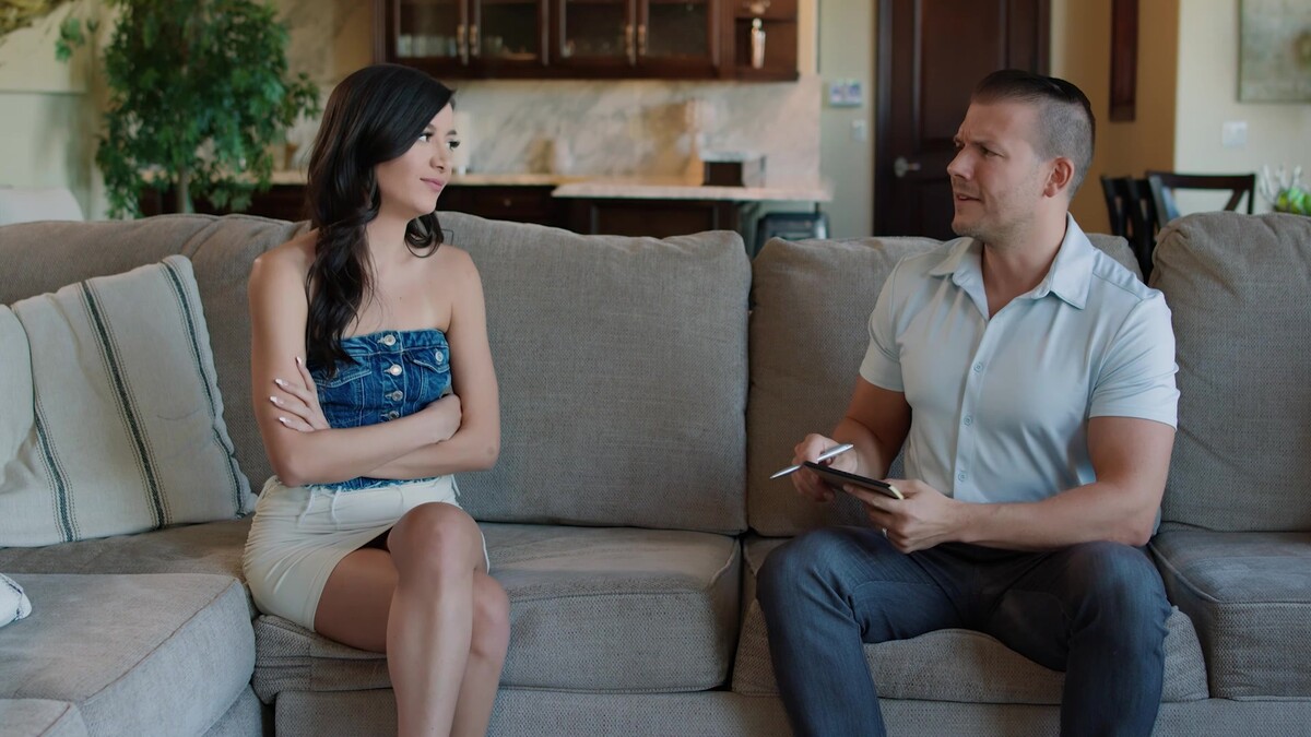 Seien Sie vorsichtig, wenn Sie Ihren Mann die neue Babysitterin interviewen lassen, denn sie könnte einfach eine Schlampe sein! Und wenn sie es ist, wird sie genau wissen, wie sie das Interview manipulieren kann, damit es nur um sie geht... und um das, was sie zwischen den Beinen hat!