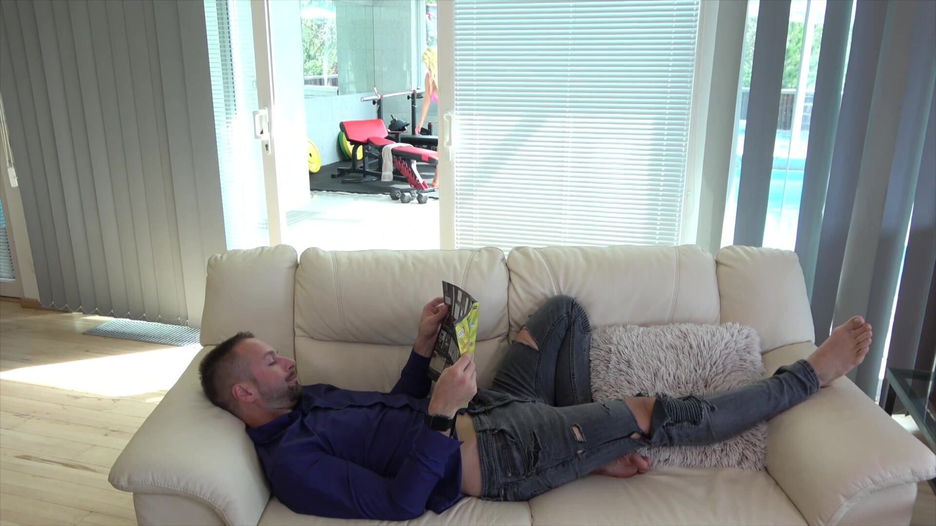 Durch die Glastür beobachtet JMac, wie Billi eine verführerische Show abzieht und ihn reizt, bis er es nicht mehr aushält. In dem Moment, in dem sie ihn hereinbittet, verschwendet er keine Zeit und taucht seinen Schwanz tief ein für ein wildes, heißes Fickfest.
